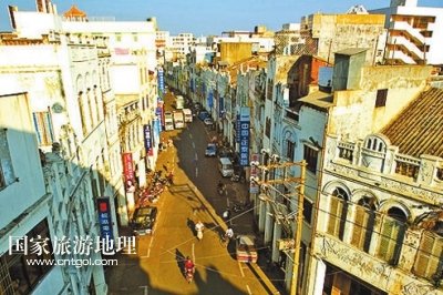 國家旅游地理 海南???月24日訊 海口騎樓歷史文化街區(qū)(簡(jiǎn)稱騎樓老街),是海口最具特色的街道景觀。2009年6月10日,首屆“中國歷史文化名街評(píng)選推介”活動(dòng)在北京揭曉,??隍T樓老街榜上有名。??隍T樓老街以其唯一性、獨(dú)特性榮獲首批十大“中國歷史文化名街”稱號(hào)。從2010年開始,??谑幸褑?dòng)騎樓老街改造項(xiàng)目。??隍T樓老街已成為了解??诔鞘袣v史的活畫冊(cè)。