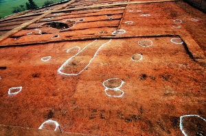 荷花山遺址已發(fā)現(xiàn)有裝飾性很強(qiáng)的陶片,這是不是中國(guó)最早的彩陶?而從分布密集的柱洞看,早期的衢州人會(huì)不會(huì)住在半穴式房屋內(nèi)呢?在荷花山遺址的西區(qū),發(fā)現(xiàn)有大量的石器、塊石混合遺跡,這是不是“石器制造場(chǎng)”?而從已發(fā)現(xiàn)有“田”字紋飾等陶片來看,這會(huì)不會(huì)祖先已有原始文字、宗教的意識(shí)?