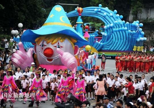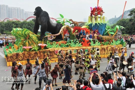 國(guó)家旅游地理 廣西柳州10月1日訊 9月30日,一輛巡游的花車經(jīng)過(guò)廣西柳州市駕鶴路。 當(dāng)日,2013中國(guó)柳州國(guó)際水上狂歡節(jié)以一場(chǎng)“狂歡大巡游”拉開帷幕。10輛造型各異的花車和國(guó)內(nèi)外各具特色的演藝團(tuán)體為市民和游客帶來(lái)一場(chǎng)歡樂盛宴。