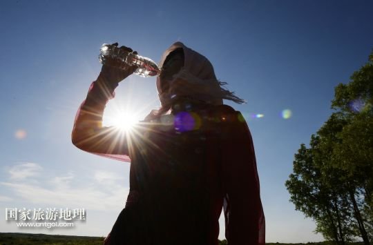 國家旅游地理 寧夏銀川10月11日訊 圖為顧蕓香(8月14日攝) 14年來,寧夏靈武農(nóng)民顧蕓香的心,不知隨著沙漠里的樹“生生死死”了多少回。