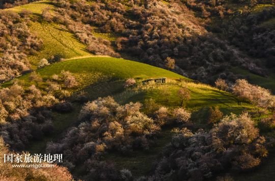 摘要:進入四月,位于新疆伊犁哈薩克自治州新源縣吐爾根鄉(xiāng)的原始杏花林進入盛花期,杏花林鑲嵌在山間,猶如一幅美妙的畫卷。