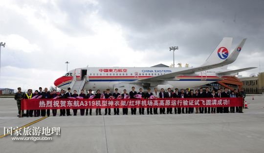 國(guó)家旅游地理 湖北神農(nóng)架4月28日訊 4月28日,試飛成功后機(jī)組人員在飛機(jī)前合影留念。當(dāng)日,東航A319機(jī)型在神農(nóng)架紅坪機(jī)場(chǎng)通過(guò)高高原運(yùn)行驗(yàn)證,試飛成功。神農(nóng)架機(jī)場(chǎng)海拔高度2580米,是華中地區(qū)海拔最高的機(jī)場(chǎng),將于5月8日正式通航,首飛東方航空公司的上海—武漢—神農(nóng)架航線(xiàn)。從武漢到神農(nóng)架的旅途時(shí)間將由過(guò)去乘汽車(chē)9小時(shí)縮短至50分鐘。 /新華社記者 郝同前攝