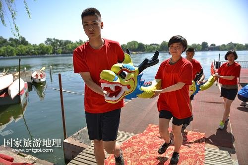 國家旅游地理 北京5月28日訊 5月28日,龍舟賽開始前,工作人員按照傳統儀式將“神龍”請上碼頭點睛。當日,北京什剎海街道舉辦迎端午節(jié)系列活動,通過賽龍舟和纏繒子、吆喝表演等豐富多彩的民俗文化活動,讓端午節(jié)的傳統習俗回歸百姓生活,彰顯什剎海地區(qū)民俗文化的特色。新華社記者 李鑫 攝