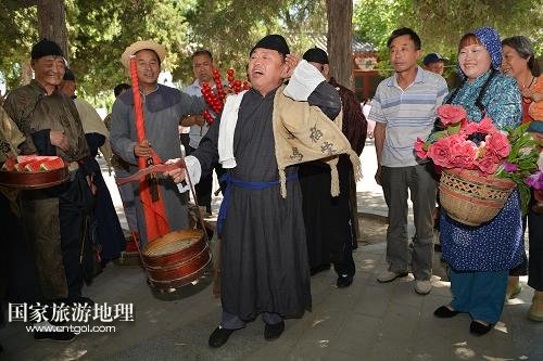 5月28日,傳統老北京吆喝表演者在后海小廣場表演叫賣吆喝。