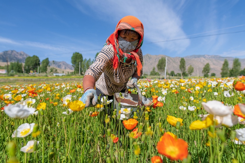 時(shí)值盛夏,地處祁連山北麓高海拔山區(qū)的甘肅省高臺(tái)縣新壩鎮(zhèn)紅沙河村種植的虞美人繽紛綻放,形成花海景觀。近年來(lái),高臺(tái)縣新壩鎮(zhèn)將花卉蔬菜制種作為特色產(chǎn)業(yè)來(lái)抓,積極引導(dǎo)農(nóng)戶規(guī)模化、集中化種植,成為當(dāng)?shù)剞r(nóng)業(yè)增效、農(nóng)民增收的支柱產(chǎn)業(yè)之一。