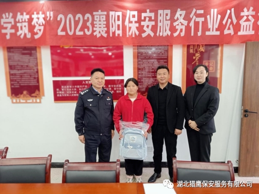 2023年11月24日在襄陽市公安局保安監(jiān)管大隊的帶領(lǐng)下,湖北獵鷹保安服務(wù)有限公司聯(lián)合襄陽其他保安服務(wù)行業(yè)一行7個單位走進(jìn)??悼h店埡鎮(zhèn)兩所學(xué)校,為貧困學(xué)生送去了資助金和一批書籍、文具、書包等物資。
